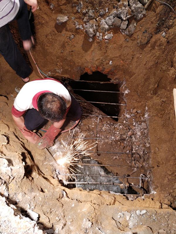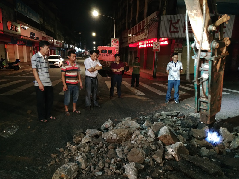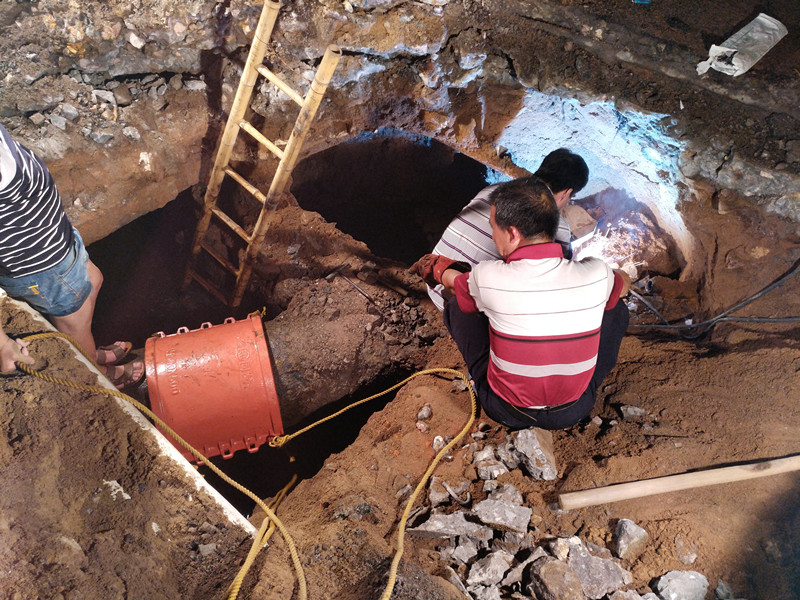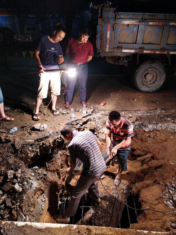 官汕二路僑港街路口東排溝內(nèi)DN500管破裂連夜搶修
