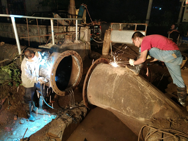 葉塘甘塘村主管道DN800鋼管連夜搶修