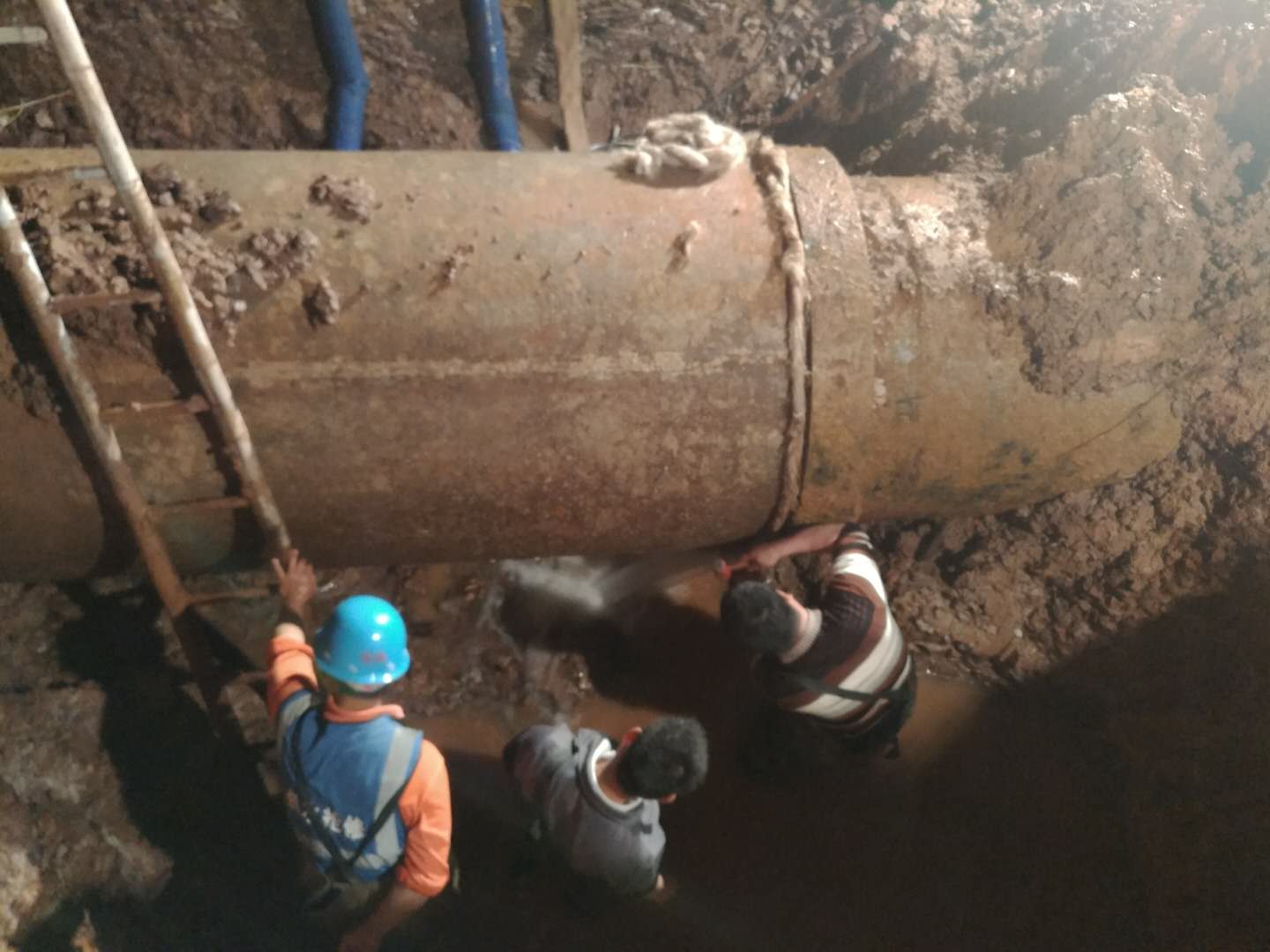 新陂米寨DN1200供水主管突發(fā)爆裂連夜搶修