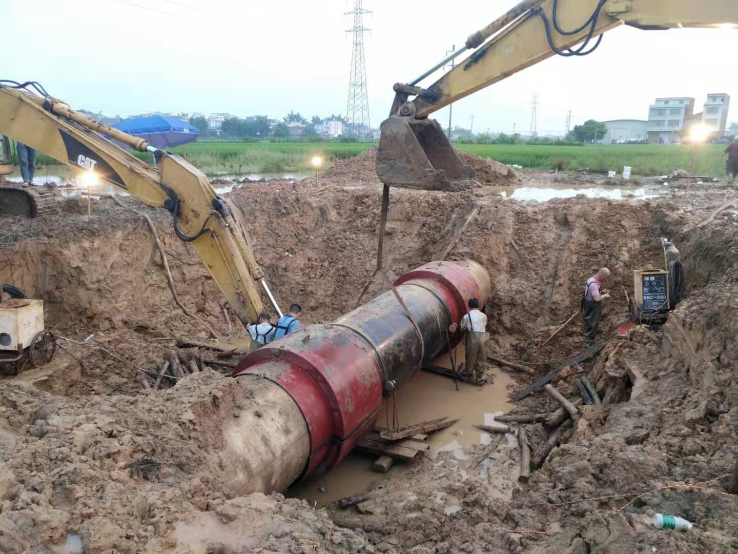 這次搶修是自來水建廠以來難度最大的,一是甘塘村剛好在打路不準勾機等材料運輸車通過,新橋閘設有限高桿,拆除浪費了好幾個小時。二是搶修現(xiàn)場在湖洋田中央,搶修機械材料運輸通過非常困難,很多材料是由人工徒手扛過去的。三是昨晚意外的雷雨大風影響,因此延遲了搶修進度。帶來的不便和影響,我司深表歉意!