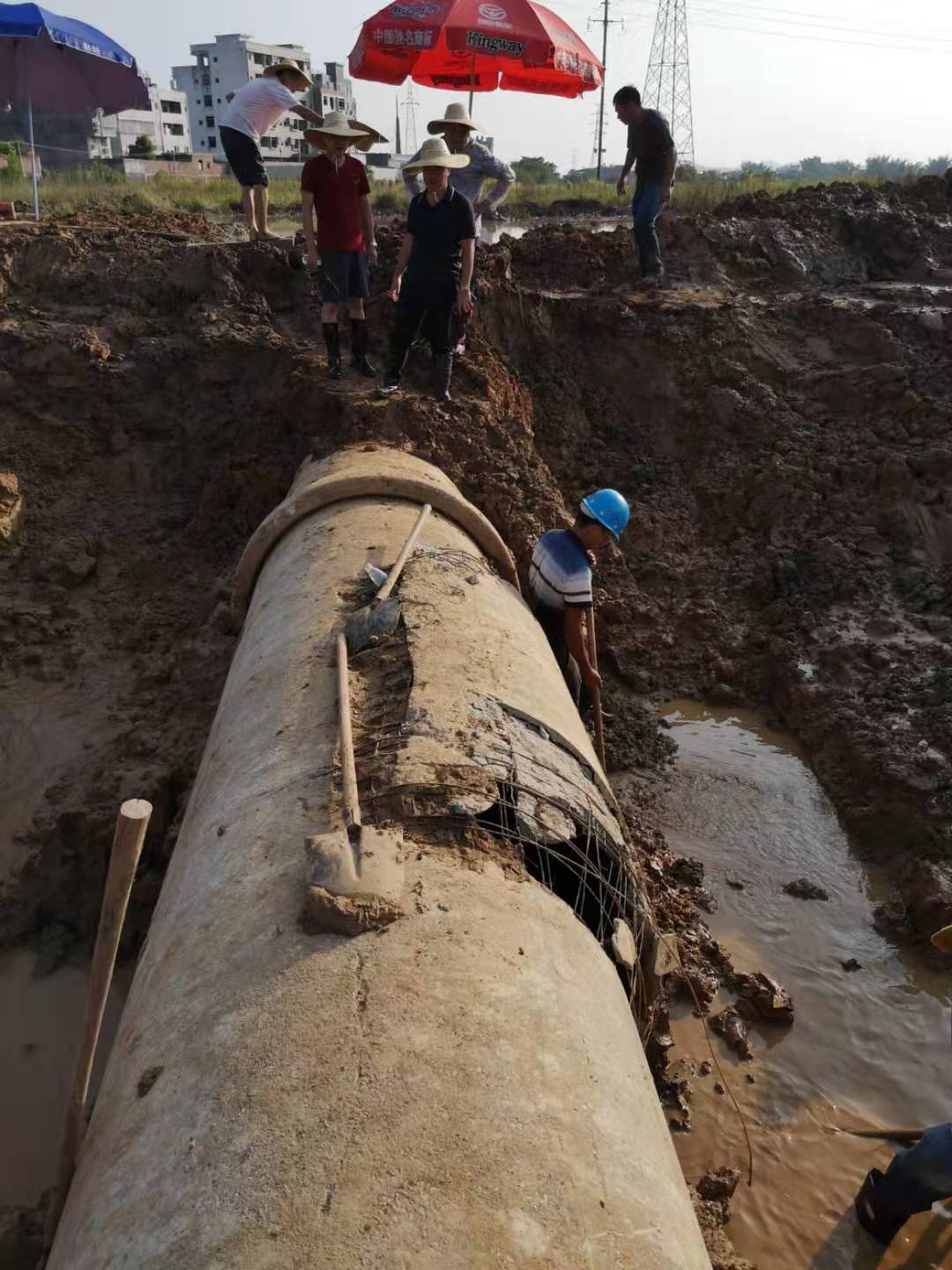 甘塘村橋閘側(cè)97年鋪設的直徑1.2米的水泥主輸管現(xiàn)已搶修完畢。由于地處湖洋田中央,施工復雜、難度大,我司連夜組織搶修人員、機械實施經(jīng)過二夜一天的不間斷連續(xù)作業(yè),直至恢復供水。